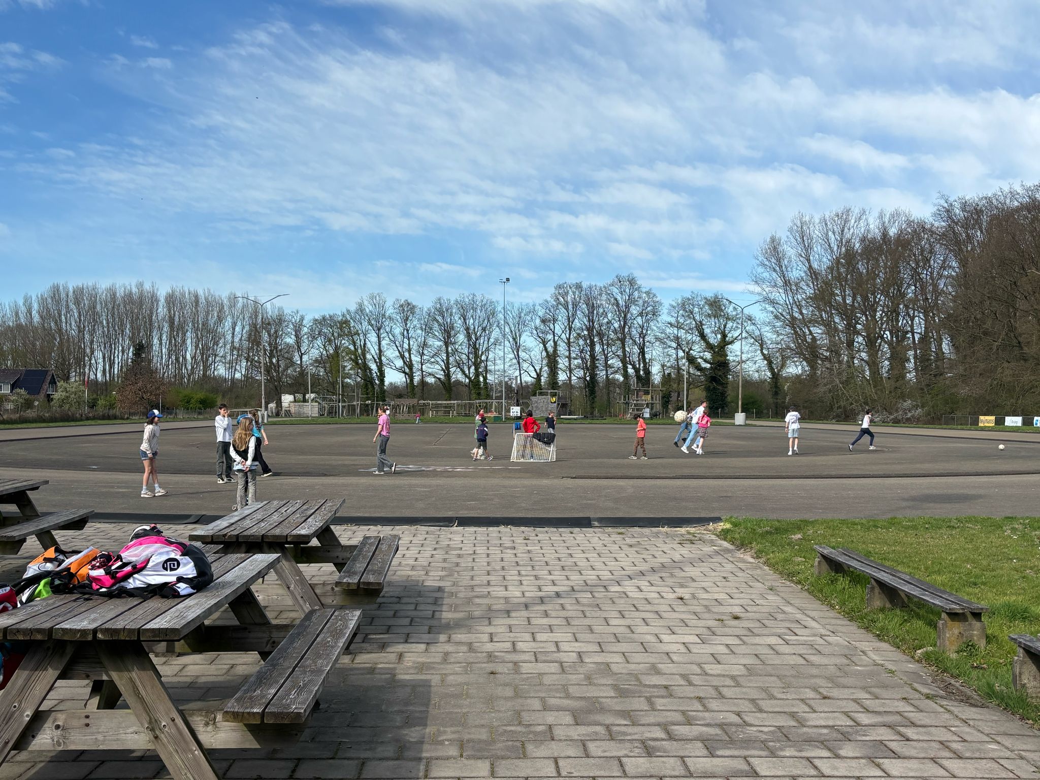 De pupillen konden de bijeenkomst bijwonen, maar al gauw konden zij zich buiten uitleven met de verschillende activiteiten zoals voetbal, skeeleren en bellen blazen.