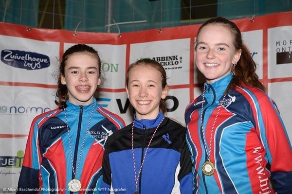 Alle pupillen die de kids triatlon helemaal volbrachten kregen een mooie medaille. Nieuw dit jaar was het estafette onderdeel op de kidsafstand. Hier maakten Pip, Tess en Jade gelijk gebruik van, en met succes!