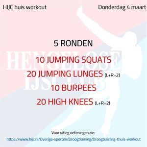 Voor vandaag 5 ronden sprongwerk. Werk de ronden in een zo hoog mogelijk tempo af. Succes!