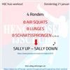 Voor vandaag eerst een WOD met sprongwerk welke tevens een mooie opwarmer is voor de directe door op volgende ‘Sally Up - Sally Down’. Zet de muziek aan (zie link) en ga in een diepe squat zodra je ‘Sally Down’ hoort, kom dan weer omhoog bij ‘Sally Up’. Let op, enkele squat zal je iets later moeten vasthouden dus luister goed naar de muziek ;-) Succes!