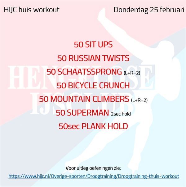 Schaatstrainer Bart Jongman heeft voor alle leden van de Hengelose IJsclub een trainingsschema samengesteld waarmee iedereen thuis zijn conditie op pijl kan houden.