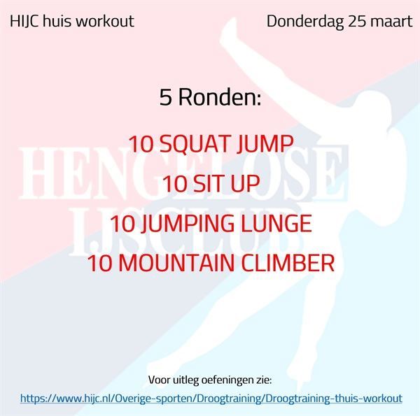 Schaatstrainer Bart Jongman heeft voor alle leden van de Hengelose IJsclub een trainingsschema samengesteld waarmee iedereen thuis zijn conditie op pijl kan houden.