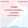 Voor vandaag een heerlijke sprong serie, werk deze lekker stevig door. Vind je de workouts (soms) wat te zwaar pas dan zelf het aantal herhalingen aan of neem een korte pauze na elke ronde. Uiteindelijk zijn alle workouts terug te schalen naar jouw eigen niveau. Succes!