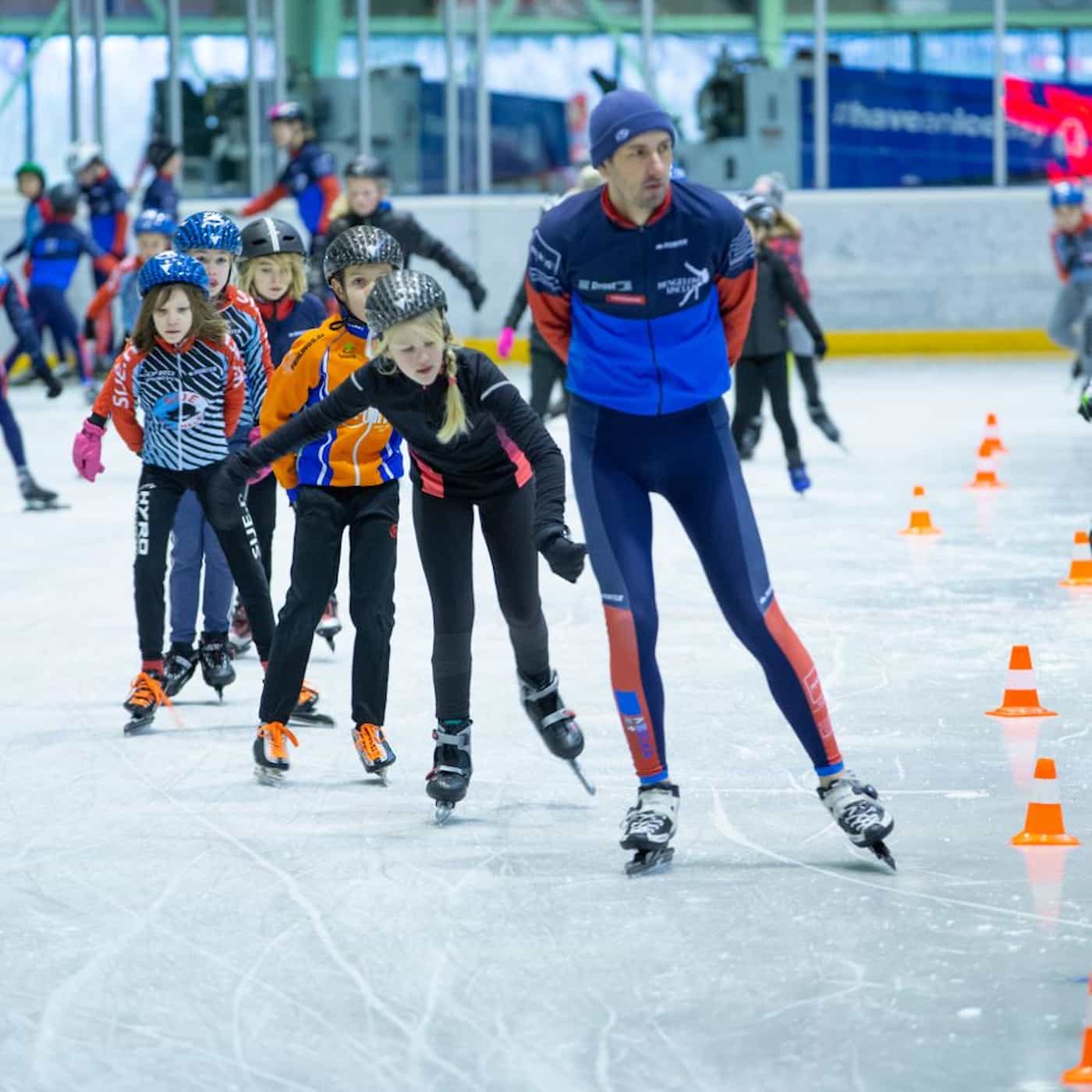 Je schaatst dan met andere schaatsclubs op een andere ijsbaan, bijv. in Groningen, Deventer of Heerenveen.